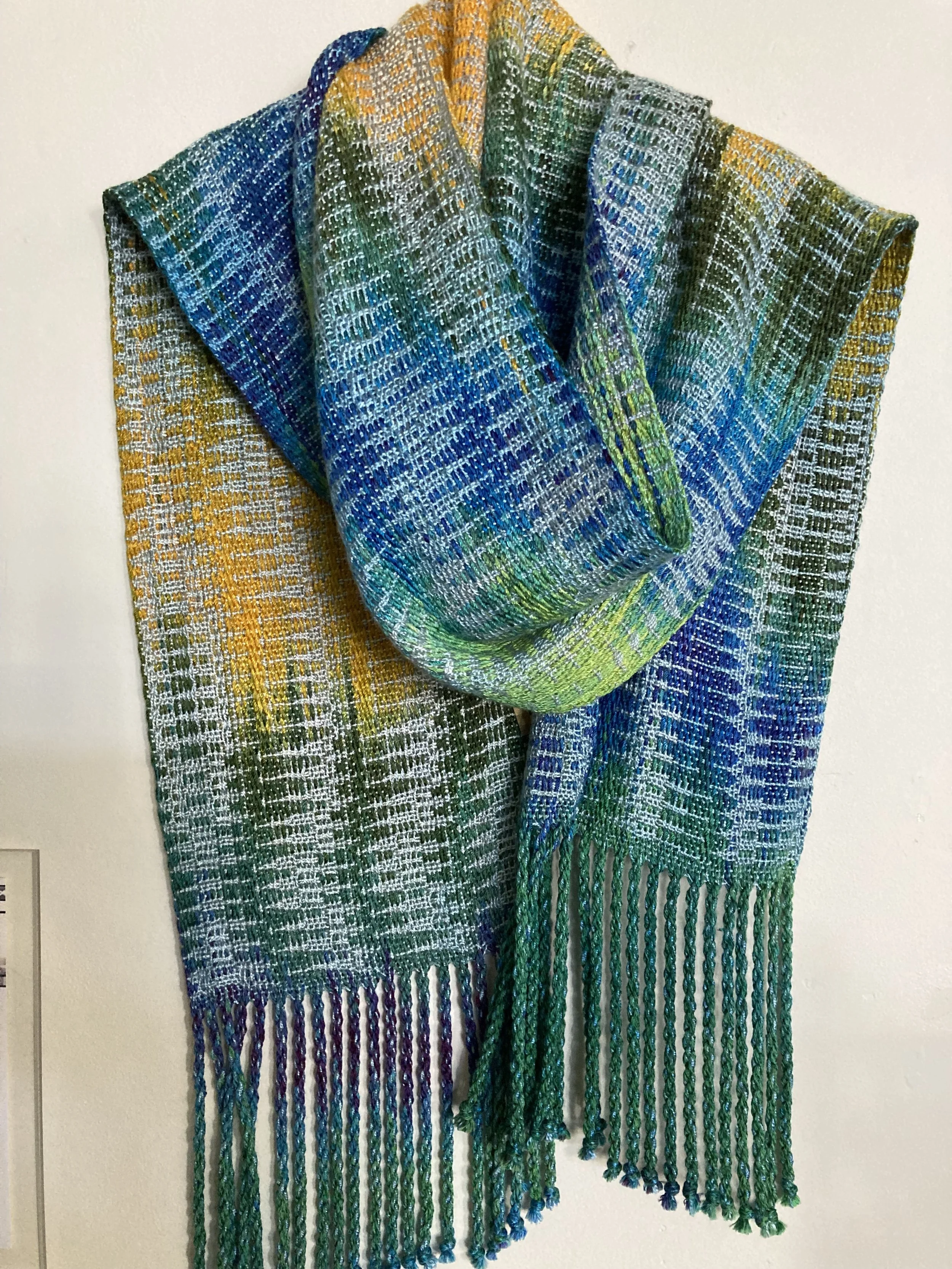 I was 12 years old when I first saw a working loom, but I didn’t get my hands on one until 1983, when I came to Humboldt State from southern California and stumbled upon a light and loom filled studio in Gist Hall, now long gone. While completing a degree in philosophy, I took textile and art courses every term, eventually settling upon weaving as my primary medium. I also create artists books incorporating weaving, collage and other objects.