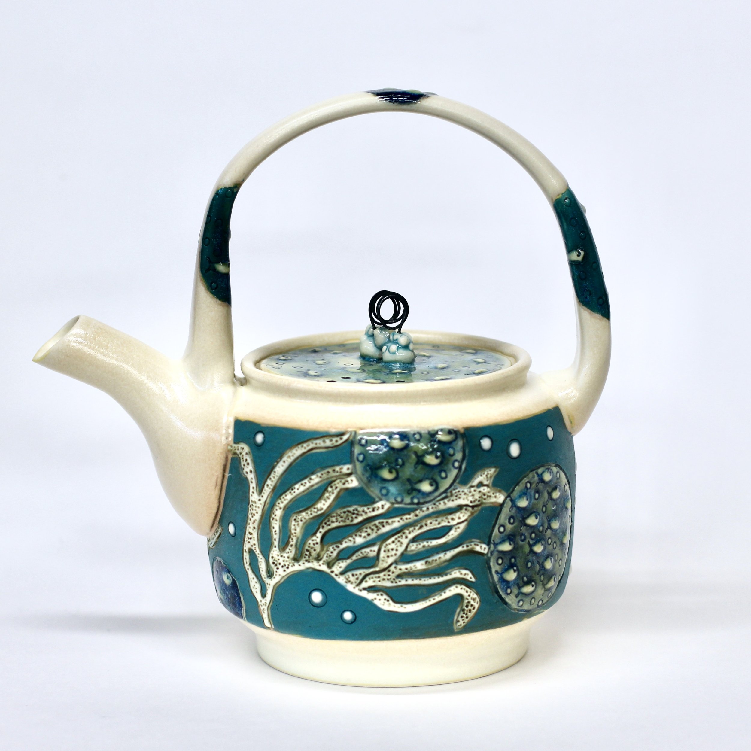 She loves all aspects of creating pottery and ceramic art but lately has focused on surface decoration and expanding her hand-building skills to compliment her wheel-thrown work.