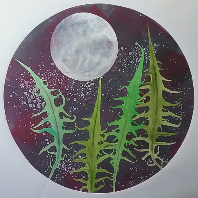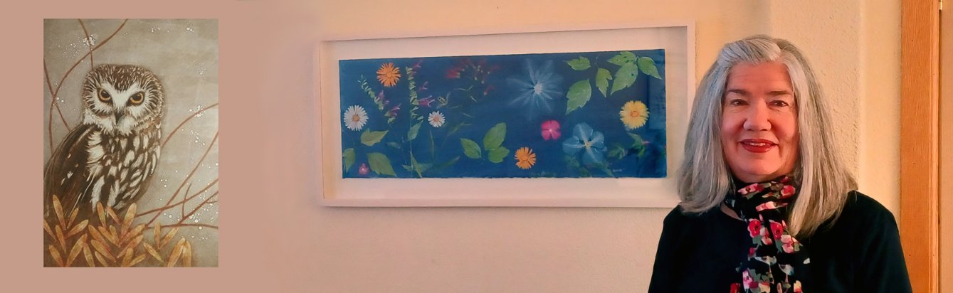 Originally from the Midwest, I studied Art at the University of Kentucky and in Denmark before moving to Arcata. After graduating from Humboldt State University I painted on silk with French dyes, creating both wearable art and wall hangings. I then spent three years teaching art in elementary and high school on the tiny island of Tinian in the Mariana Islands of the Western Pacific. My work there transitioned from silk painting to traditional transparent watercolor, mainly botanicals, which I have enjoyed for many years. The painterly form of printmaking called Monotype beckoned though. I began pursuing that medium with a workshop on Guam, a week at Bennington College in Vermont and then classes at Kala Institute in Berkeley CA and at The Ink People Center For The Arts in Eureka CA. Currently I continue to work in Monotype printmaking, portraying mainly birds, bees and botanicals. Also I enjoy creating in Cyanotype, one of the oldest methods of photography, usually with a distinctive blue color. In making a Cyanotype, harvested and pressed botanicals are placed on heavy treated paper and put outside in the sun so that their shapes appear; after processing and drying, I then add watercolor to the plant shape areas. Both methods of my art practice are influenced by hikes in nearby forests and mountains and by my Blue Lake garden. Visitors are welcome by appointment at my Northtown Arcata studio in Stewart School. I enjoy working on commissions in a variety of media